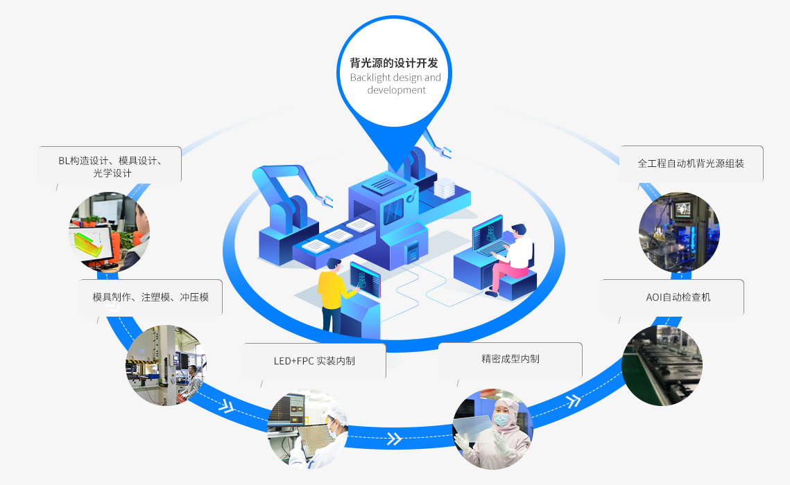 公司深耕背光顯示模組領(lǐng)域;通過持續(xù)不斷的技術(shù)創(chuàng)新;不斷加深的一體化生產(chǎn)能力;持續(xù)打造技術(shù)領(lǐng)先、質(zhì)量過硬、服務(wù)周全的優(yōu)質(zhì)產(chǎn)品。通過多年模具設(shè)計及制作經(jīng)驗,利用日本高精度模具加工等設(shè)備;緊貼客戶需求,重視產(chǎn)品組合開發(fā),向客戶提供一站式專業(yè)產(chǎn)品及技術(shù)解決方案。